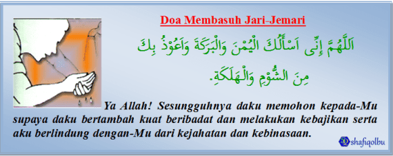 2. Membasuh jari-jemari hingga pergelangan tangan sambil membaca: