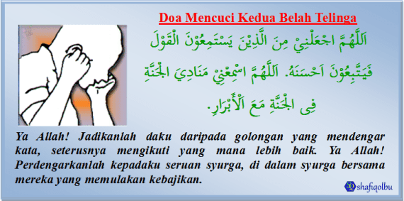 8. Membasuh bahagian luar dan dalam kedua belah telinga sambil membaca doa: